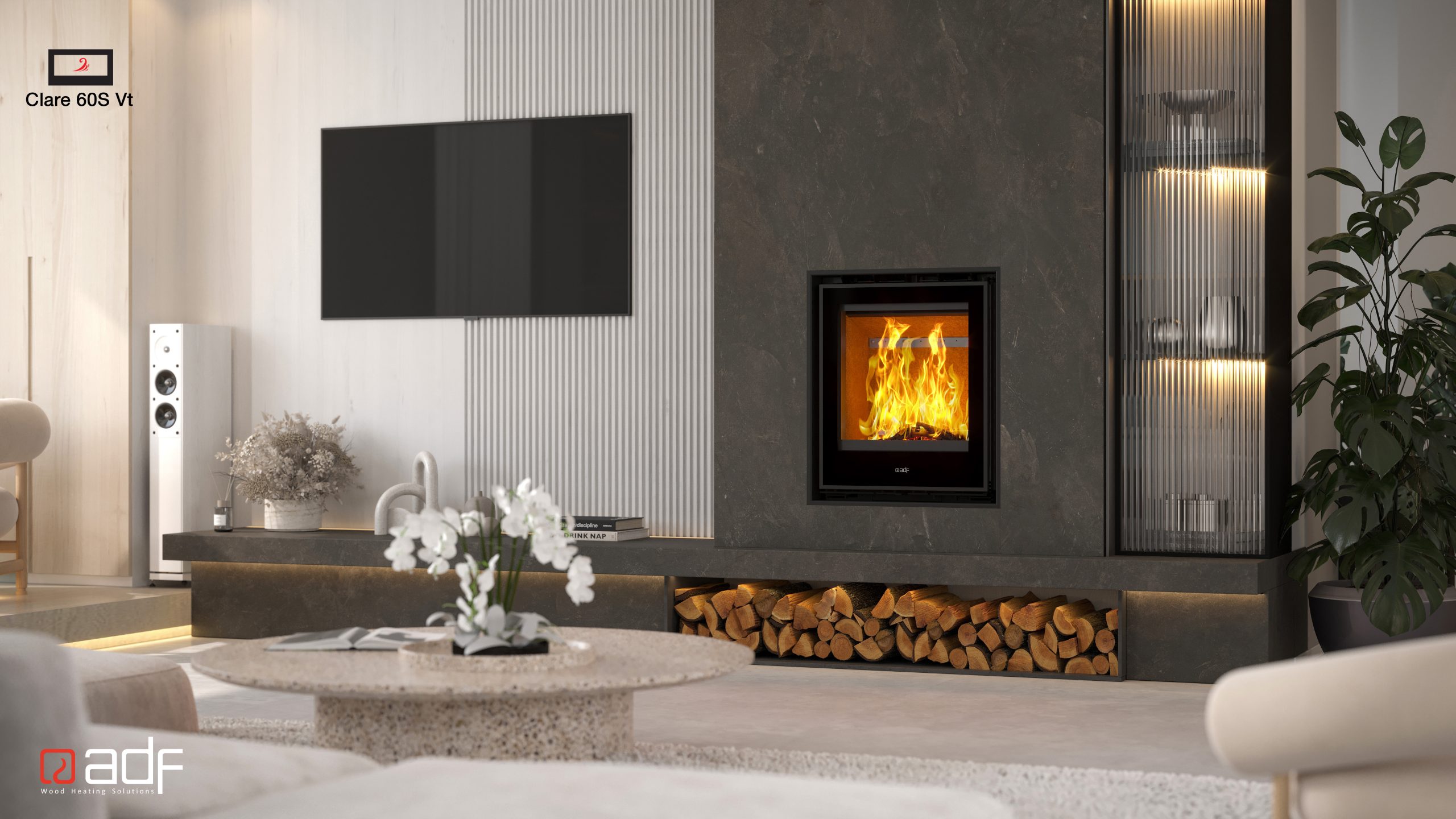 The Clare 60S Vt Insert wood burning fireplace boasts enhanced heat output efficiency while maintaining its sleek contemporary lines. This innovative take on a wood burning fireplace epitomises the quality craftsmanship and creative flair that ADF has mastered over the decades.